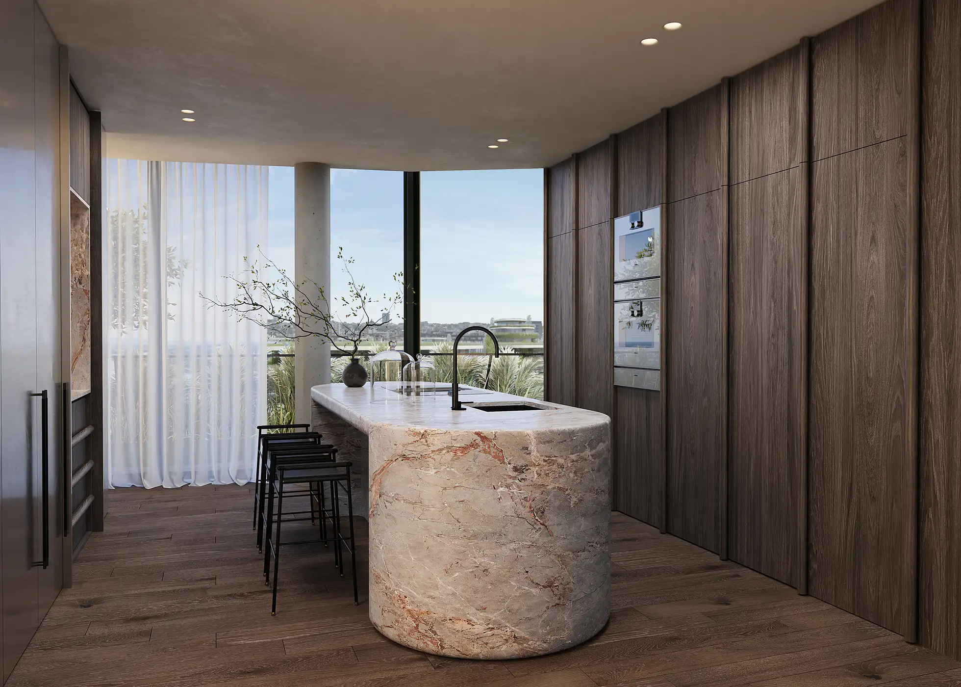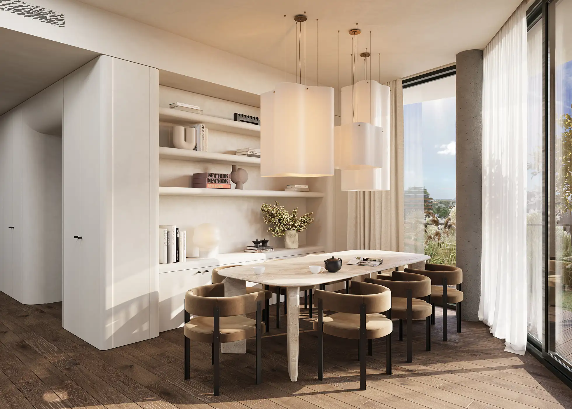 Designed in direct dialogue with Marina Dorćol’s architectural vision, this penthouse interior reflects the building’s spatial clarity, material sensibility and relationship with light and views, translating them into a refined, tactile environment shaped for everyday family life.